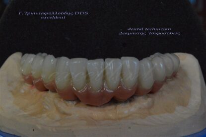 Ακόμη ένα περιστατικό ολικής στοματικής αποκατάστασης ασθενούς με ακίνητες γέφυρες στηριζόμενες σε εμφυτεύματα(8 στην άνω και 7 στην κάτω γνάθο).