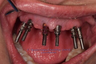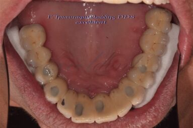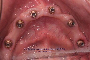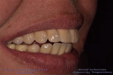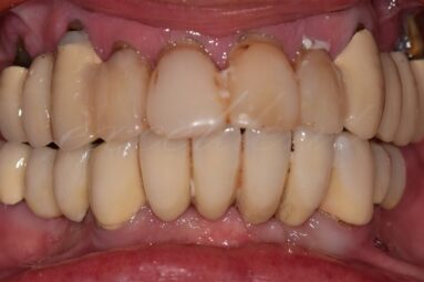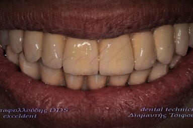 Περιστατικό αποκατάστασης με ακίνητες γέφυρες πορσελάνης στηριζόμενες σε 6 εμφυτεύματα στην άνω και 6 στην κάτω γνάθο